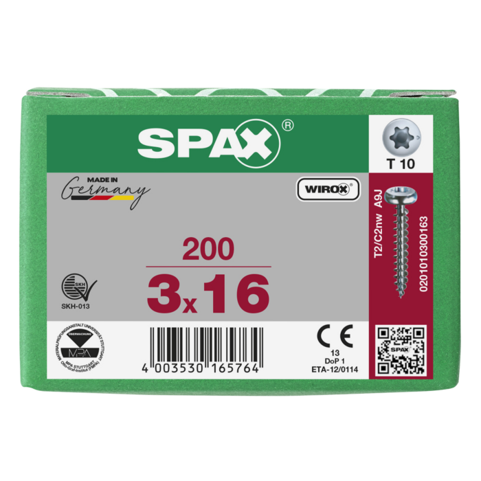 Spax spaanplaatschroeven T10 cilinderkop verzinkt 3 x 16 mm voldraad 200 stuks