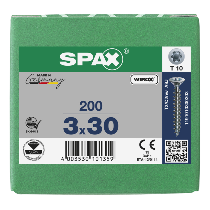 Spax spaanplaatschroeven T10 verzinkt 3 x 30 mm voldraad 200 stuks